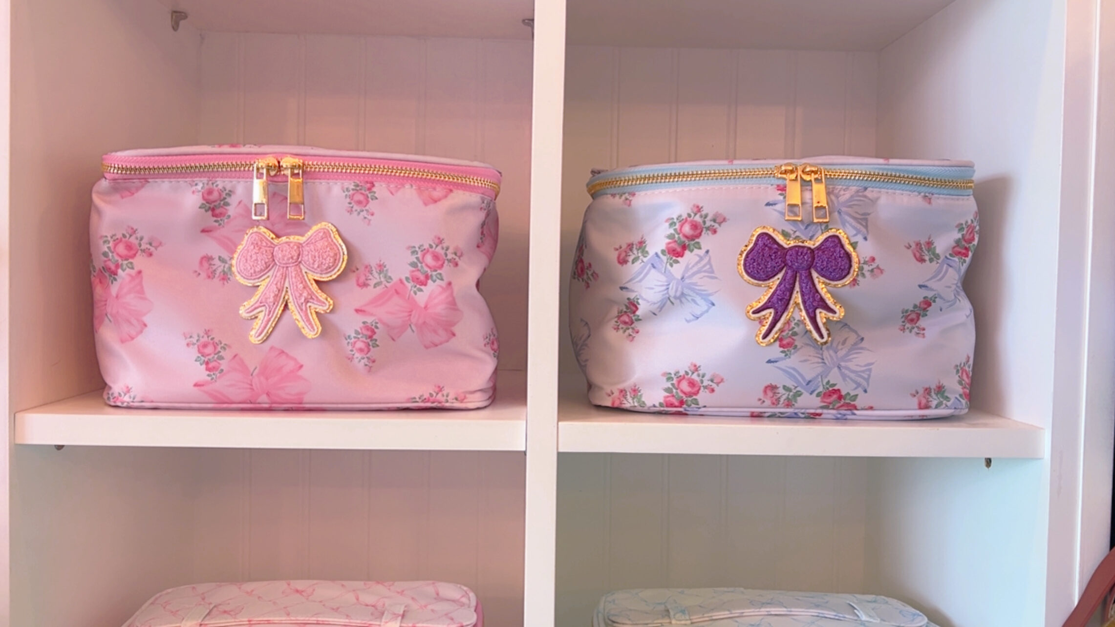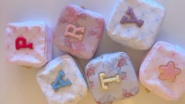 Holiday Bows and Roses Makeup Bags. Ready to personalize.