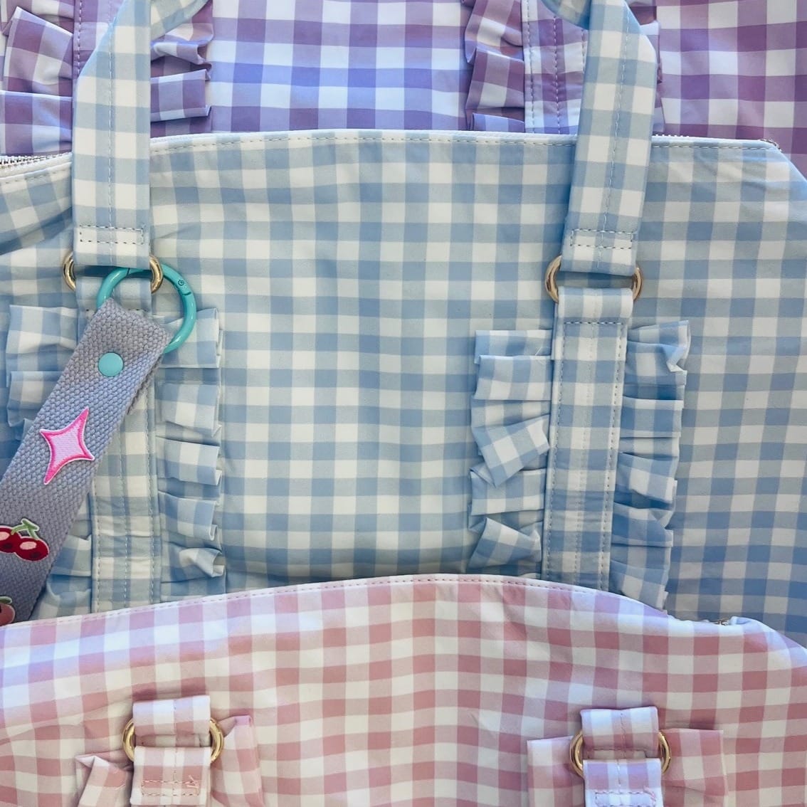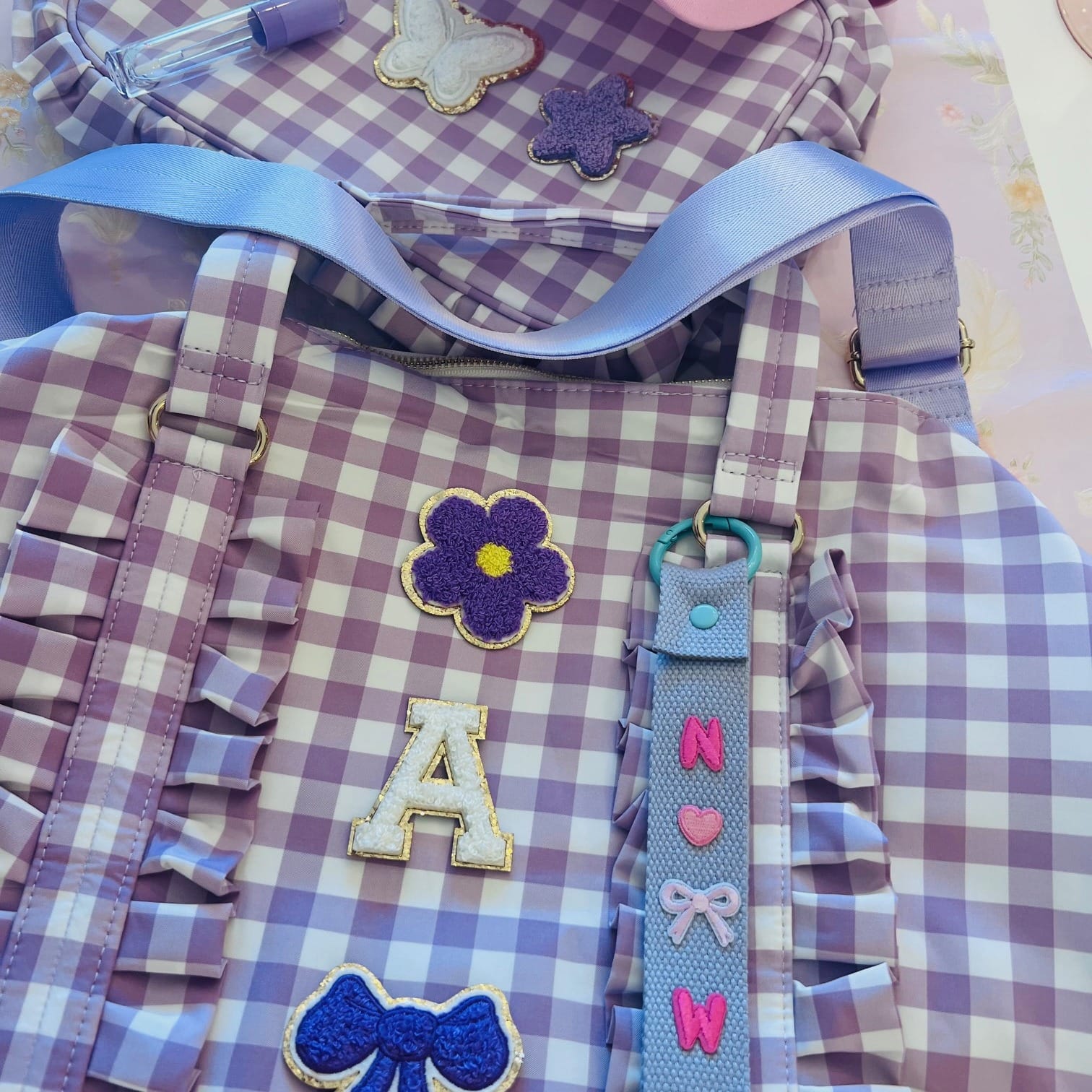 🎒 Edition 3: Custom Patch Ruffle Duffle Bag and Ruffle Cosmetic Case includes 6 patches. Various colours.