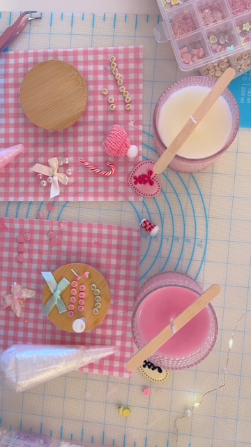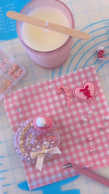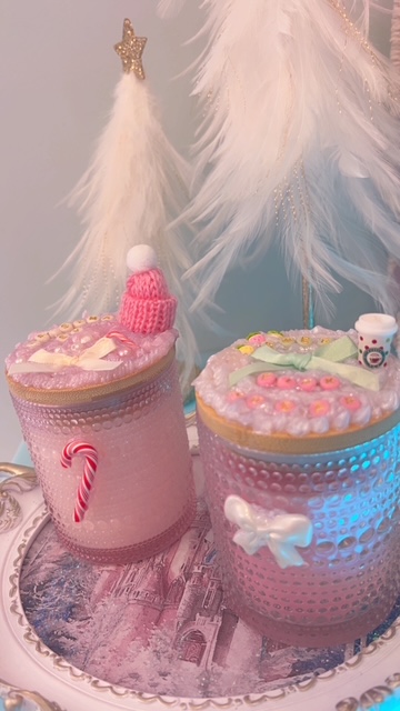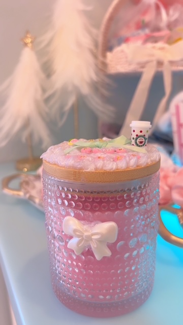 Scented Candle in Vintage Glass Vessel with Decoden Lid - 9 oz. Fun to make and to decorate! Choose your favourite scent (dozens to choose from) and your wax colour. Made with Apricot Coconut Soy Wax. 100% natural cotton wick, non-toxic and biodegradable. These candle vessels come with a wooden lid that have an inner silicone fitment that grips the lid to the vessel.  Ready to add Decoden charms and Icing!