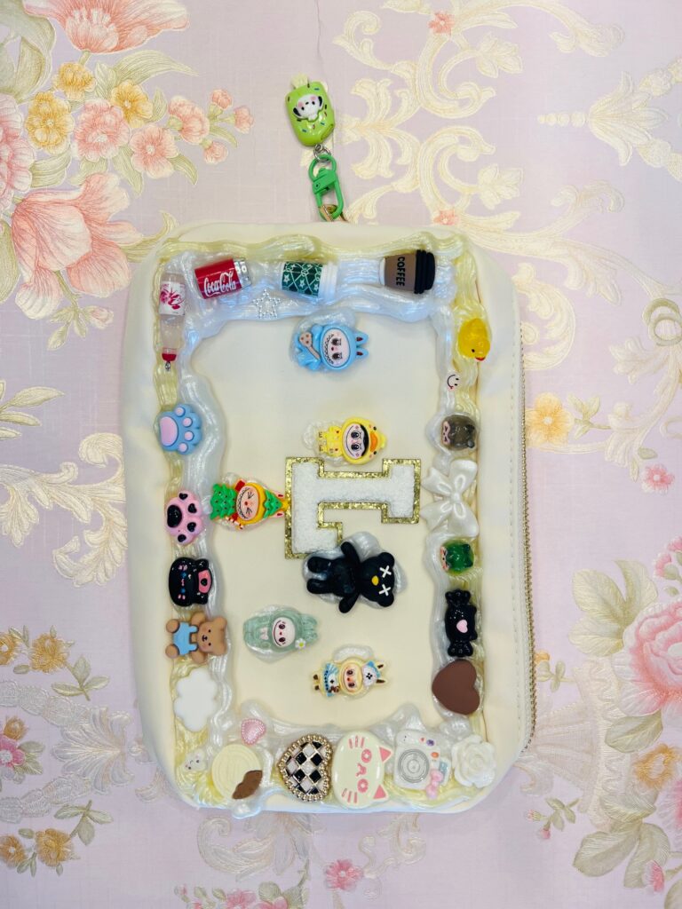 Decoden Makeup Bag : Sprinkle on the charm and express your creativity with Decoden Japanese Crafting. Decoden is a movement all about decorating items with kawaii (cute) things such as candy charms, whipped cream, pastel colors, and of course, chibi (small) animals. These items are layered to create a preppy, maximalist, top-layered look. It was originally known as “keitei art,” but became known as Decoden later.