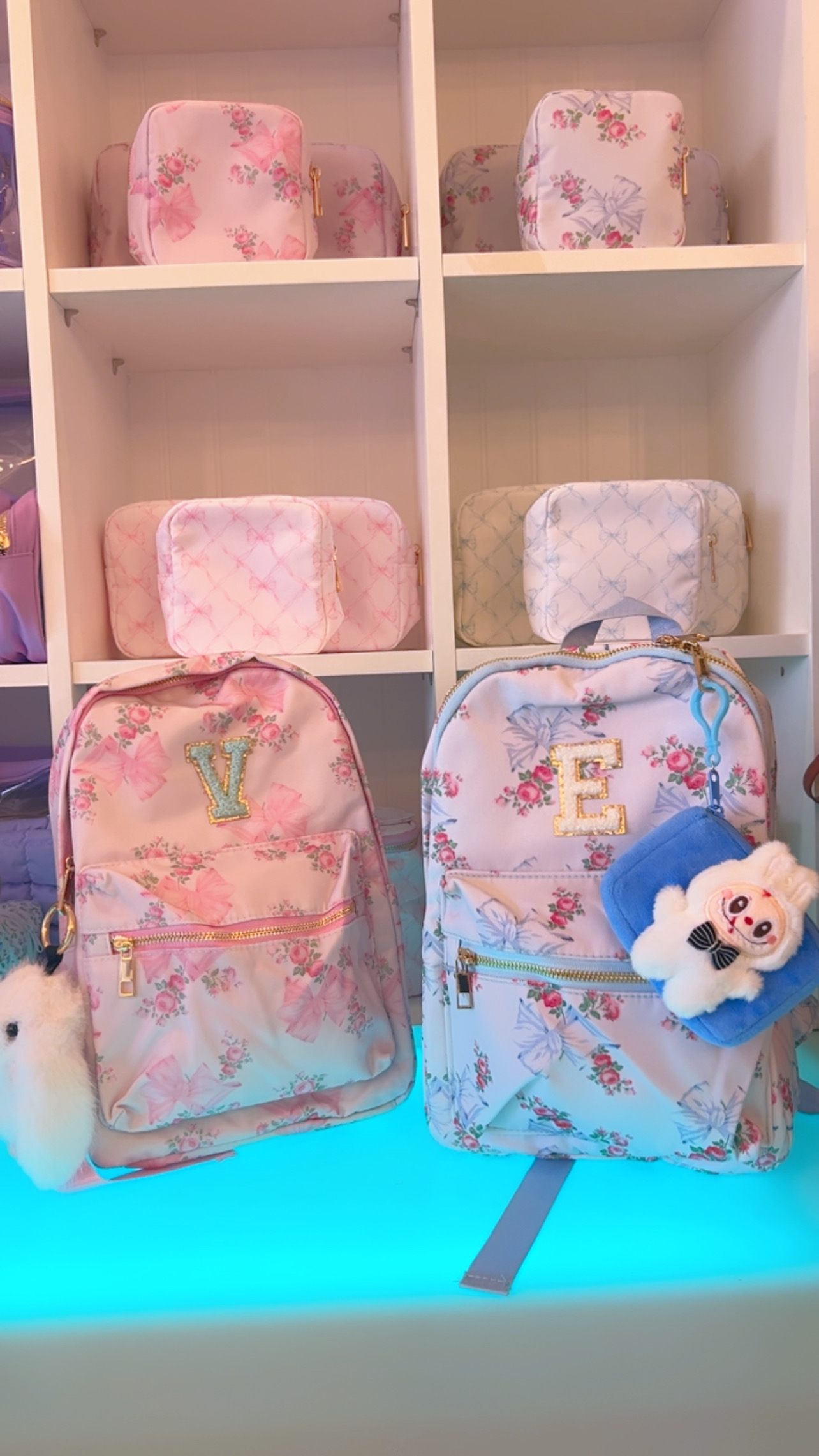 Blue Bows and Roses Coquette Bow Mini Backpack