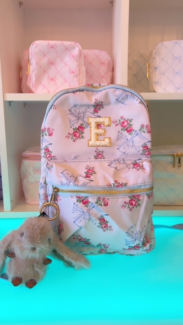 Personalize this pretty bow bag with patches and charms (not included).
